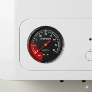 Low water pressure is one of the most common reasons boilers shut down at night. Your boiler has a pressure gauge on the front—it’s usually a dial with green and red sections, or a digital reading.
