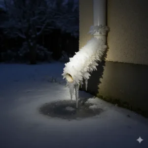 Go outside with a torch and find this pipe. If it’s frozen (you might see ice or feel it’s rock solid), you can carefully thaw it using warm—not boiling—water poured over the pipe. I usually tell people to use a hot water bottle wrapped around the pipe if they’re nervous about pouring water.
